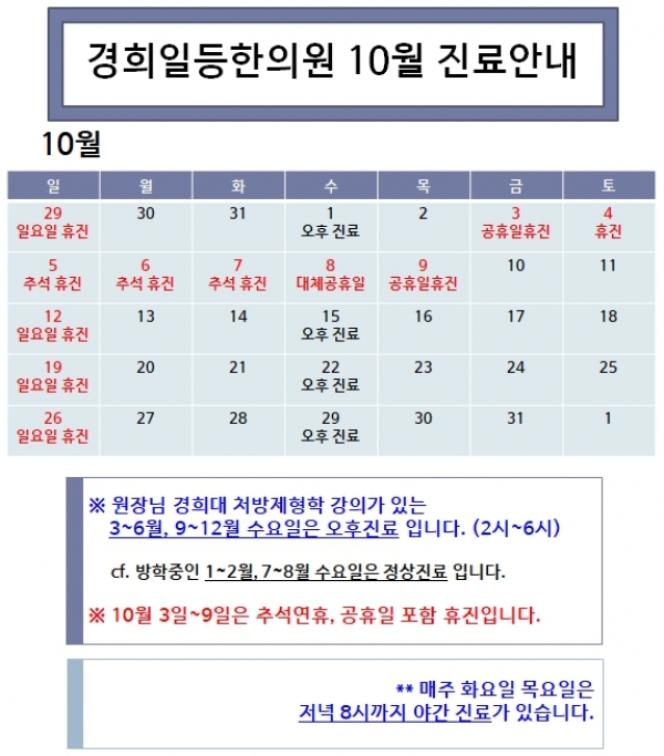 ***9,10,11,12월 수요일은 오후진료입니다.(2시~6시, 내용무)***